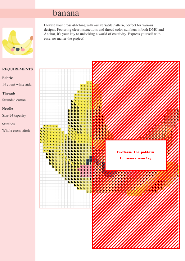 Stitch up some sunshine with our adorable ‘Peel Good’ banana cross-stitch pattern! This easy-to-follow, instant download PDF includes a complete thread list (DMC & Anchor), a symbol chart, and a color key. Perfect for beginners and experienced stitchers, add a touch of fruity fun to your home décor! Instant gratification for your crafting needs. Download and start stitching today!