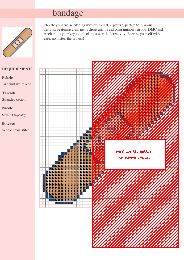 Stitch up a stylish and meaningful statement with our ‘Modern Bandage’ cross-stitch pattern! This versatile design is perfect for adding a unique touch to your next crafting project. Imagine it as a quirky wall hanging in a doctor’s office, a personalized gift for a medical professional, or a striking element in a larger sampler. The pattern boasts a clean, modern aesthetic with a clear and easy-to-follow design featuring precise symbol charts, making it accessible to both beginner and experienced cross-stitchers. We’ve included thread color numbers in both DMC and Anchor brands for ultimate convenience. After purchase, you’ll instantly receive a downloadable PDF containing the pattern chart (with symbols) and a complete list of required DMC and Anchor thread codes on separate pages for easy reference. The color palette is versatile and can be adapted to your personal style. Express your creativity and add a touch of modern medical flair to your handmade creations! This unique pattern is sure to be a conversation starter, blending modern aesthetics with a touch of medical whimsy. Download your pattern today and start stitching! Perfect for cross stitch enthusiasts, crafting lovers, needlepoint hobbyists, handmade gift makers, and anyone looking for a unique and meaningful project. This design also makes a great addition to a medical themed cross stitch sampler. The PDF is instantly downloadable, ensuring you can start your project right away.