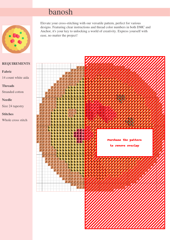 Embark on a delightful cross-stitch journey with the Banosh pattern! This versatile design is perfect for crafters of all skill levels, offering a satisfying blend of simplicity and intricate detail. The clear and concise pattern includes detailed instructions and color charts using both DMC and Anchor thread numbers, ensuring a smooth stitching experience. The downloadable PDF (two pages) provides a symbolic pattern chart and a comprehensive list of required DMC and Anchor thread codes, eliminating guesswork. This charming design is ideal for personal projects, thoughtful gifts, or adding a unique handmade touch to your home décor. Imagine the cozy ambiance it will bring! Whether you’re a seasoned stitcher seeking a relaxing project or a beginner looking for a manageable yet rewarding challenge, the Banosh pattern is your perfect choice. Download your pattern instantly after purchase and begin your crafting adventure today! The finished piece adds a touch of rustic charm and makes a beautiful addition to any space. Perfect for adding a handmade touch to cushions, wall art, or even needlepoint.