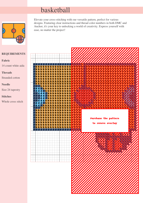 Create a vibrant and dynamic basketball cross stitch with this easy-to-follow pattern! Featuring a realistic action shot and utilizing both DMC & Anchor threads, this instant download PDF pattern is perfect for cross-stitchers of all skill levels. Download now and start stitching!