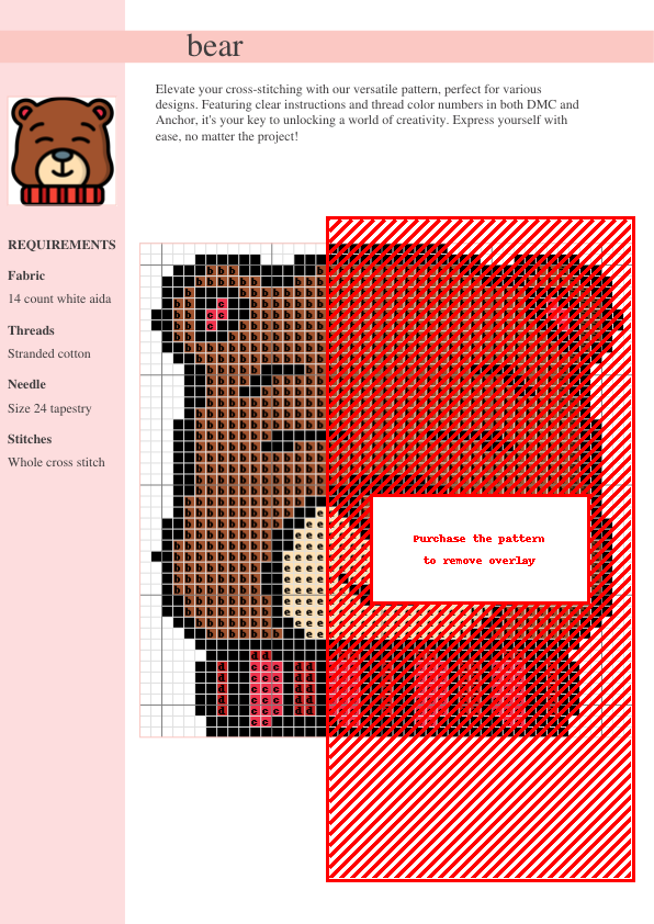 Unleash your inner artist with our charming Bear Cross Stitch Pattern! This delightful design is perfect for cross-stitch enthusiasts of all skill levels, from beginners to experienced crafters. The pattern features an endearing, cuddly bear, perfect for creating a heartwarming wall hanging, a personalized gift, or a unique embellishment for a larger project. The easy-to-follow instructions include a complete color key with both DMC and Anchor thread numbers, ensuring a smooth and enjoyable stitching experience. You’ll instantly receive a downloadable two-page PDF pattern featuring clear symbols and a comprehensive thread list after purchase. Embrace the joy of crafting and stitch your way to a sweet and satisfying creation. This pattern is ideal for adding a touch of whimsy to your home decor, creating a thoughtful handmade gift, or simply enjoying a relaxing crafting session. The design is rendered in soft, appealing browns, creams, and blush pinks, adding a touch of cuteness to your life! This pattern is a great choice for intermediate cross-stitchers who want a satisfying and cute project to enjoy!