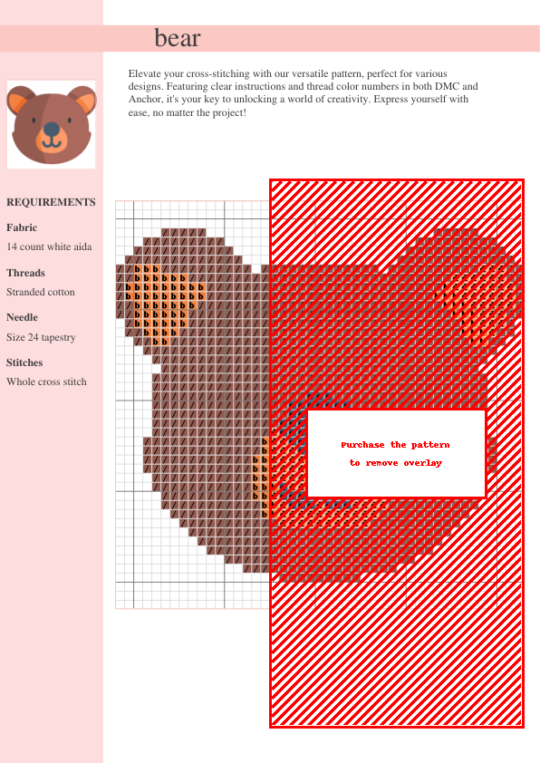Create an adorable bear cross stitch with our easy-to-follow pattern! Featuring a warm, cozy color scheme and using both DMC & Anchor thread codes for easy floss selection, this pattern includes a color symbol chart and complete thread list for effortless stitching. Instant PDF download – start stitching your sweet bear today!