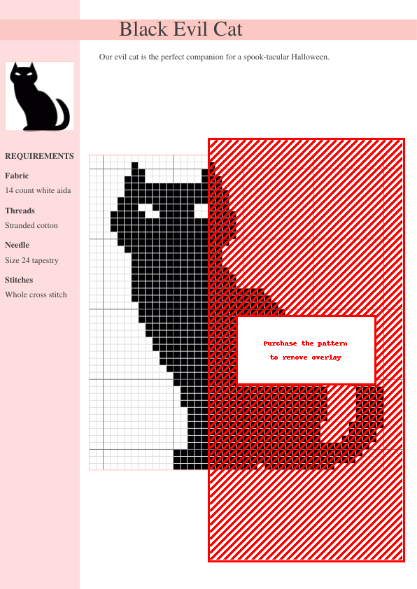 Unleash your creativity with this adorably spooky black cat cross-stitch pattern! This charming design features a mischievous feline with glowing eyes, perfect for adding a touch of playful darkness to your Halloween decorations, gothic-inspired projects, or any craft needing a whimsical edge. The intricate details, including its expressive eyes and sleek fur, bring the cat to life, making it a unique and captivating piece for your home or a delightful, spooky-cute gift. This easy-to-follow pattern includes clear instructions and a DMC floss color key, suitable for both beginner and intermediate stitchers. Imagine this captivating creation adorning pillowcases, wall hangings, tote bags, or even a spooky-themed sampler! The finished project measures approximately 6 inches x 6 inches. Prepare for purr-fectly spooky stitching fun! Download your pattern and get stitching today!