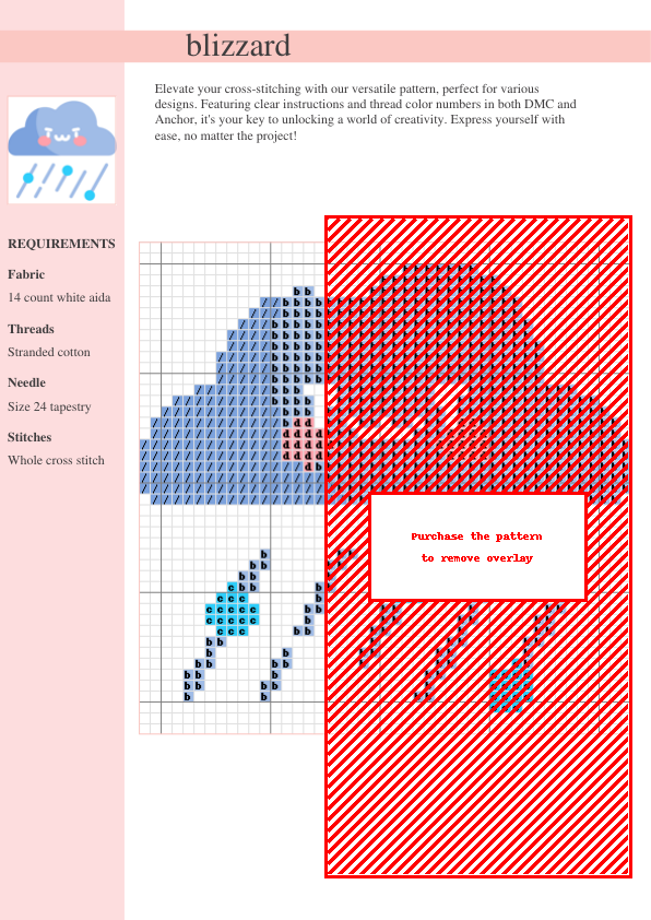 Embrace the magic of winter with our ‘Blizzard’ cross stitch pattern! This enchanting design depicts a breathtaking winter wonderland, complete with swirling snowflakes, frosted trees, and a serene landscape. Perfect for creating stunning home décor, thoughtful gifts, or adding a festive touch to your needlepoint collection. The pattern features a detailed, easy-to-follow chart with clear symbols and a comprehensive thread color key using both DMC and Anchor thread numbers, making it accessible to intermediate cross-stitchers. The intricate details offer a challenging yet rewarding stitching experience. This downloadable PDF pattern includes a two-page chart and a complete thread list for effortless project initiation. Once completed, your finished cross stitch will be a cherished keepsake or a magnificent gift. Let the winter wonderland inspire your next crafting adventure!