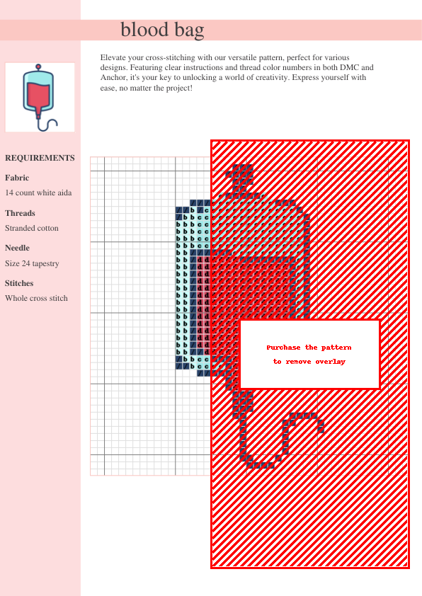 Unleash your inner goth with our captivating “Gothic Charm: Blood Bag” cross-stitch pattern! This unique and edgy design features a meticulously detailed blood bag, perfect for adding a touch of dark romance or spooky Halloween flair to your projects. The pattern provides clear, easy-to-follow instructions and a comprehensive color key using both DMC and Anchor thread numbers for a seamless stitching experience. Imagine stitching this darkly romantic piece for a Halloween decoration, a unique gothic-themed home accent, or a fun, creative gift. This downloadable PDF (two pages) includes both a symbol chart and a complete thread list, making it accessible for both beginner and experienced cross-stitchers. Download instantly after purchase and begin stitching your masterpiece today! Stitch your own gothic charm and add a touch of macabre elegance to your crafting!