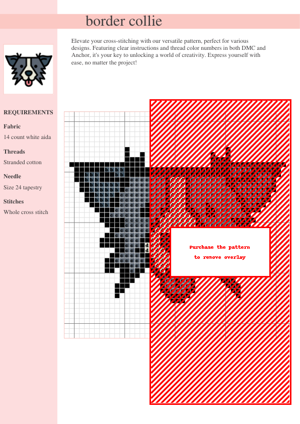 Create an adorable Border Collie cross-stitch with our easy-to-follow pattern. Includes DMC & Anchor thread color codes for convenient stitching. Instant PDF download! Perfect for beginners and experienced stitchers. A charming addition to any home decor project!