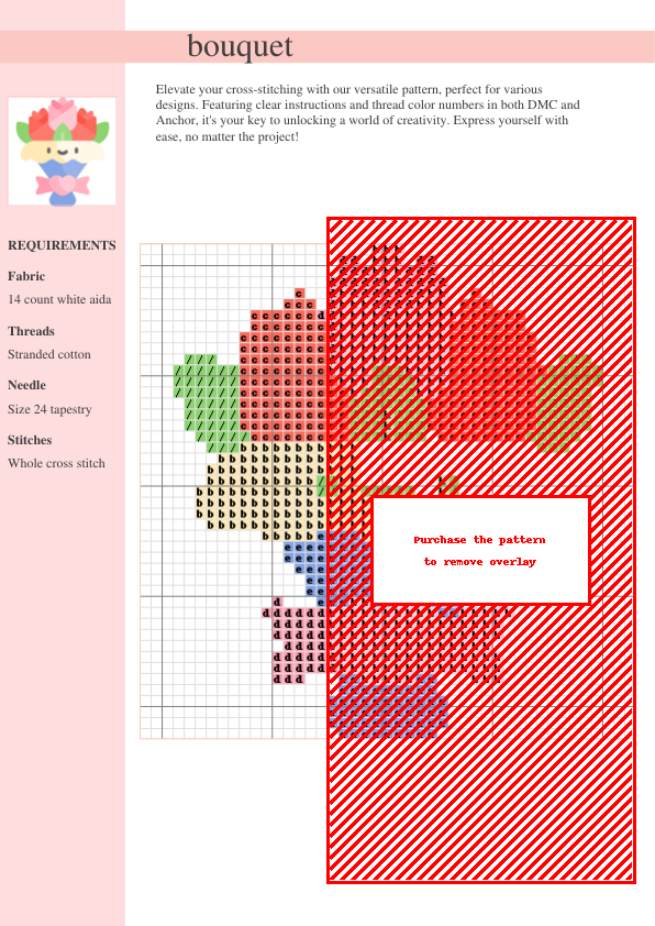 Stitch a breathtaking floral masterpiece with our “Vibrant Bouquet” cross stitch pattern! This easy-to-follow PDF pattern includes both DMC and Anchor thread charts, making it perfect for all skill levels. Download instantly and start stitching your vibrant creation! Ideal for home décor, gifts, or simply enjoying the therapeutic process of cross-stitching.