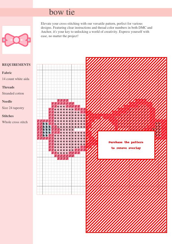 Stitch up some dapper style with this delightful bow tie cross stitch pattern! Perfect for adding a touch of elegance to personalized gifts, home décor, or charming accents on pillowcases, tote bags, or framed art. This versatile design offers clear, easy-to-follow instructions and a comprehensive color key featuring both DMC and Anchor thread numbers, ensuring a smooth stitching experience for crafters of all skill levels. The pattern is presented across two easy-to-read pages with a detailed symbol chart and a complete thread list. Whether you’re a seasoned stitcher or a beginner, this pattern provides a charming challenge, leading to a beautiful, handcrafted bow tie. This digital PDF download grants instant access after purchase, allowing you to start stitching your stylish bow tie immediately. Let your creativity shine with this versatile and charming design! Includes color conversion for both DMC and Anchor threads.