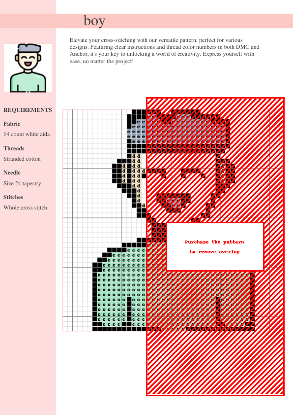 Create an adorable cross-stitched boy portrait with this easy-to-follow pattern. Includes both DMC and Anchor thread charts for convenient stitching. Downloadable PDF instantly available after purchase. Perfect for gifts, nursery decor, or adding a personal touch to your home!