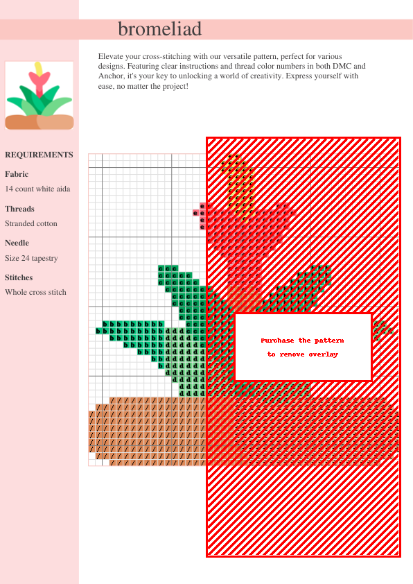 Unleash your inner artist with the ‘Bromeliad Bliss’ cross stitch pattern! This captivating design showcases a vibrant bromeliad, bursting with tropical colors and intricate details. Perfect for cross-stitchers of all skill levels, from beginners seeking a rewarding project to intermediate crafters looking for a satisfying challenge. The easy-to-follow instructions and comprehensive color key utilize both DMC and Anchor stranded cotton thread numbers (codes provided!), ensuring a smooth and enjoyable crafting process. This digital download includes a two-page PDF document featuring a clear symbol chart, a complete list of required DMC and Anchor thread codes, and is ready to stitch immediately! Imagine the breathtaking finished piece adorning your pillows, wall hangings, or incorporated into a larger sampler project. Bring a burst of nature-inspired artistry and exotic elegance to your home. Stitch your own piece of paradise! This pattern is ideal for adding a touch of tropical flair to your home decor, creating a unique handmade gift, or expanding your cross stitch sampler collection. The detailed design captures the texture and vibrancy of the bromeliad leaves and blooms, offering a satisfying stitching experience. Add a touch of sunshine to your life with this beautiful cross stitch project. Download your pattern today and start stitching!