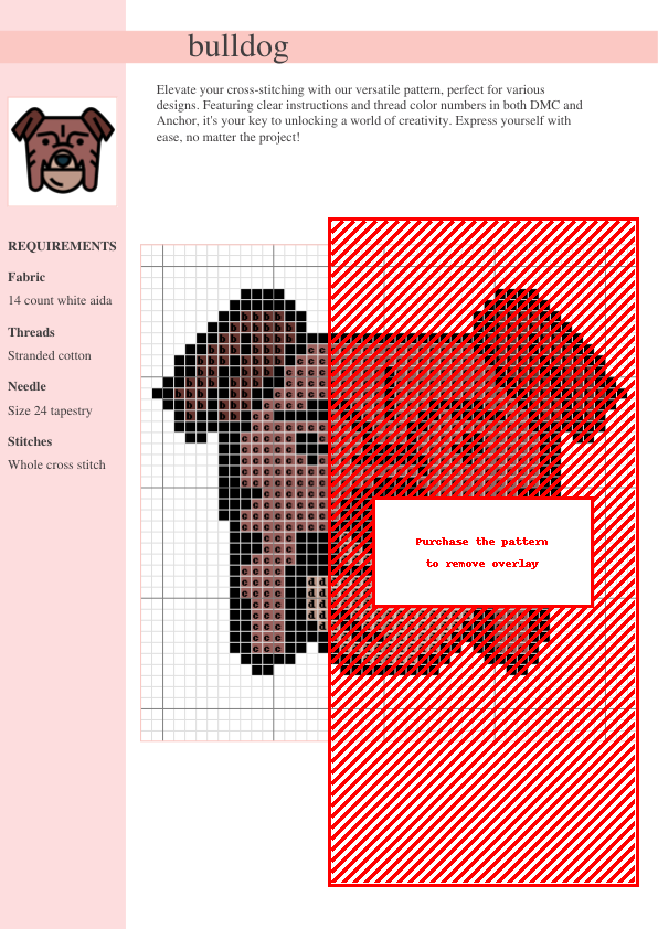 Stitch up some adorable charm with this delightful Bulldog Cross Stitch Pattern! Perfect for beginner and experienced cross-stitchers alike, this endearing design features a charming bulldog rendered in exquisite detail. The clear and easy-to-follow instructions include both DMC and Anchor thread color codes, simplifying the gathering of your supplies. This versatile pattern is ideal for creating a unique piece of home décor, a personalized gift for a dog-lover, or a charming addition to a larger cross-stitch project. Imagine the heartwarming décor in your home, or the joy of gifting this handmade treasure! The downloadable PDF pattern includes a detailed color chart and a symbol key for a seamless stitching experience. The pattern showcases the bulldog’s expressive features, capturing its personality with precision. Experience the joy of creating something paw-some with this heartwarming pattern! Download instantly and start stitching today!