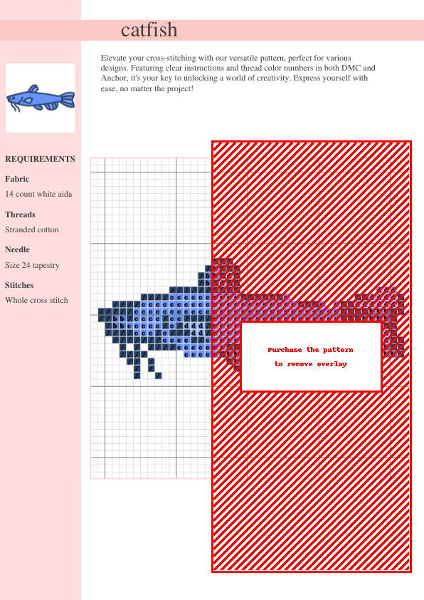 Dive into a creative adventure with our delightful Catfish Cross Stitch Pattern! This charming design, perfect for cross-stitch enthusiasts of all skill levels, features a whimsical catfish brimming with personality. Rendered in a vibrant palette of blues, greens, and oranges, this pattern offers a delightful stitching experience. The clear and concise instructions include both DMC and Anchor thread color numbers for easy supply gathering. This downloadable PDF pattern (two pages) provides both a symbol chart and a complete thread list, ensuring a smooth and enjoyable crafting journey. Whether you’re a seasoned crafter or a beginner, this pattern is perfect for creating a unique piece of art for your home, a personalized gift, or a cherished addition to your cross-stitch collection. The detailed design allows for customization โ adjust the size to suit your project, add personal touches, and watch your creative vision come to life! Download your pattern and start stitching your own charming aquatic masterpiece!