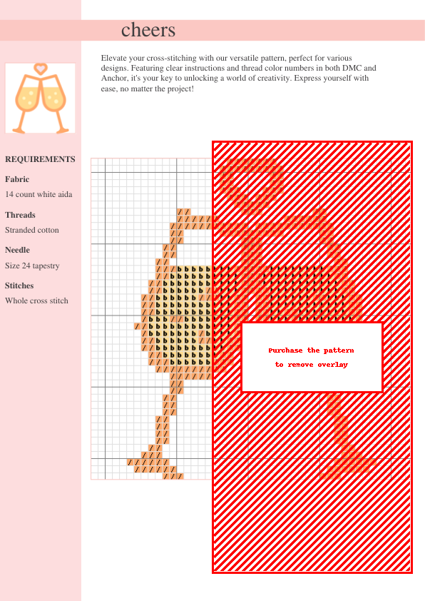 Uncork your creativity with our ‘Cheers!’ cross-stitch pattern! This delightful design features a whimsical wine glass overflowing with juicy grapes, perfect for adding a touch of festive cheer to your home or creating a unique handmade gift. The charming color palette of rich reds, deep greens, and sunny yellows evokes a celebratory toast. This easy-to-follow pattern includes both DMC and Anchor thread color codes, ensuring a smooth stitching experience for both beginners and experienced cross-stitchers. The high-resolution PDF download includes a clear symbol chart, a complete thread list, and a detailed color key. Perfect for coasters, wall hangings, or adding a personal touch to holiday decor, this festive design is a wonderful addition to any stitcher’s collection. Let the good times roll – stitch your way to cheer!