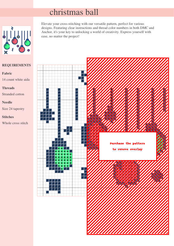 Stitch up some holiday magic with our charming Christmas Ball Cross Stitch Pattern! This delightful design captures the shimmer and delicate texture of a classic Christmas ornament, perfect for creating festive decorations, adorning holiday cards, or incorporating into a larger sampler. The intricate details are brought to life with clear and concise instructions, including both DMC and Anchor thread color numbers for easy color selection. The easy-to-follow two-page design chart utilizes symbols for effortless stitching, making it perfect for stitchers of all skill levels, from beginners to experienced crafters. Download your PDF pattern instantly after purchase and create cherished heirloom ornaments or unique, handmade gifts this holiday season. This versatile design features rich reds and shimmering golds (colors may be adjusted to your preference), allowing your creativity to shine! Imagine the warm glow of these handmade ornaments adorning your Christmas tree or brightening someone’s holiday with a personalized gift. This pattern is a perfect addition to your Christmas cross stitch collection, offering a blend of classic charm and modern appeal. Suitable for cross stitch enthusiasts of all skill levels. Start stitching your holiday cheer today!