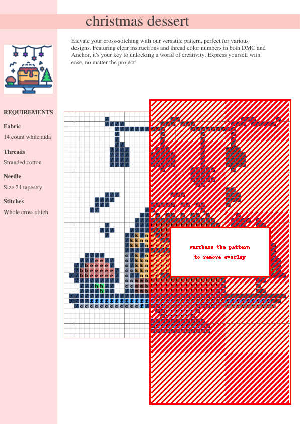 Stitch up a heartwarming holiday scene with our “Sweet Christmas Treats” cross stitch pattern! This charming design features an array of delicious-looking festive desserts – gingerbread men, candy canes, sparkling ornaments, and more – perfect for adding a touch of Christmas cheer to your home. The pattern offers clear, easy-to-follow instructions and a comprehensive thread color chart featuring both DMC and Anchor thread numbers, making it accessible to stitchers of all skill levels, from beginner to advanced. The intricate details of each sweet treat, from the icing swirls to the candy cane stripes, will bring joy to your stitching experience. Create a beautiful, personalized ornament, wall hanging, or unique gift! This digital PDF download includes a two-page document with the pattern chart and a detailed thread key. Unleash your creativity and make this festive masterpiece your own! Perfect for Christmas crafting, holiday decorations, holiday gifts, needlepoint, cross-stitch projects, and seasonal home decor. Download instantly and start stitching your sweet Christmas memories today!
