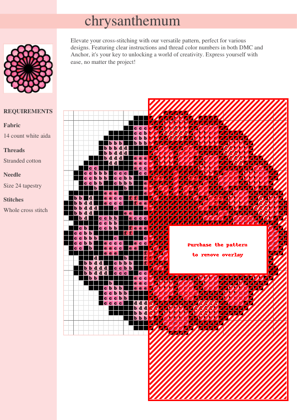 Create a breathtaking chrysanthemum cross-stitch with this easy-to-follow PDF pattern! Featuring DMC & Anchor thread charts, a clear symbol key, and simple instructions suitable for all skill levels, this instant download lets you start stitching your elegant floral masterpiece today!