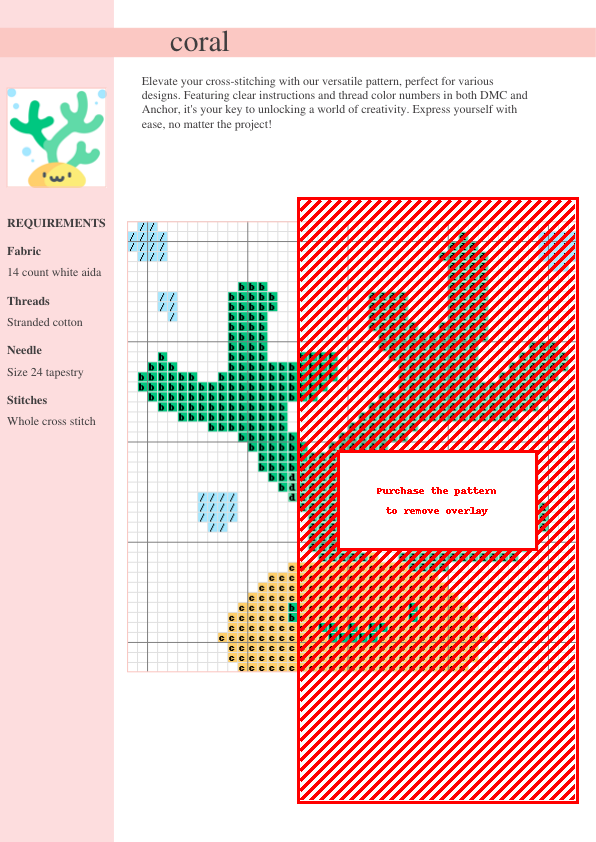 Be the first to review “Vibrant Coral Reef Cross Stitch Pattern: Easy DMC & Anchor Chart”