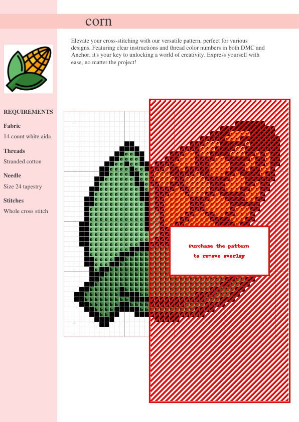 Stitch up rustic farmhouse charm with our easy Sweet Corn Cross Stitch Pattern! This instant PDF download includes clear instructions, DMC & Anchor thread color codes, and a lovely sweet corn design perfect for home decor or gifts. A relaxing and rewarding cross-stitch project for all skill levels!