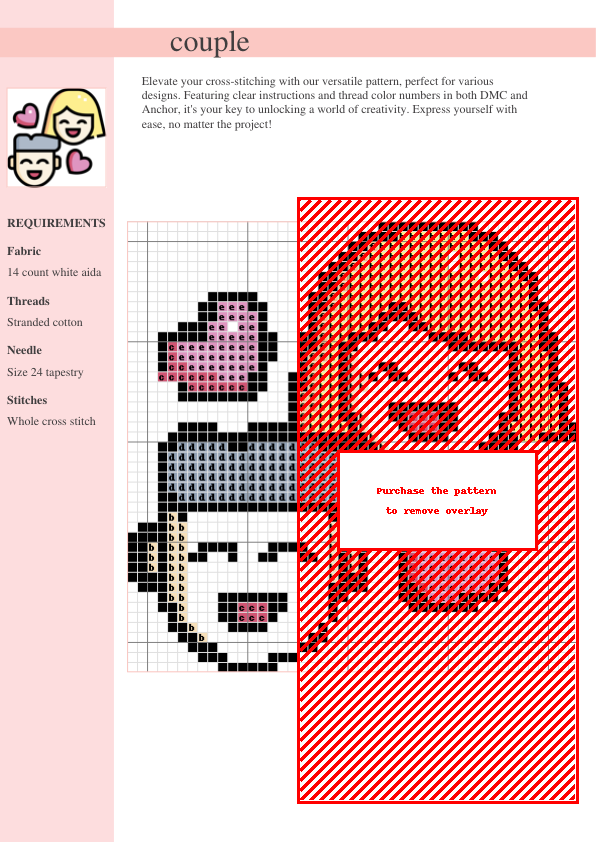 Capture the essence of love with this delightful cross-stitch pattern! Featuring a charming couple in intricate detail, this versatile design is perfect for adding a touch of romance to your home decor, creating a heartfelt gift for anniversaries, weddings, or Valentine’s Day. The pattern provides clear, easy-to-follow instructions and a complete thread color chart using both DMC and Anchor stranded cotton thread numbers (DMC and Anchor thread colors are listed!), ensuring a smooth and enjoyable stitching experience. Intermediate to advanced cross-stitchers will appreciate the elegant design and intricate details of the couple’s attire and surroundings. This high-resolution PDF pattern is instantly downloadable after purchase, with the symbol chart on one page and a comprehensive thread list on the second for seamless stitching. Create a beautiful addition to your home, a treasured keepsake, or a unique handmade gift. Download your pattern and let your creativity bloom!