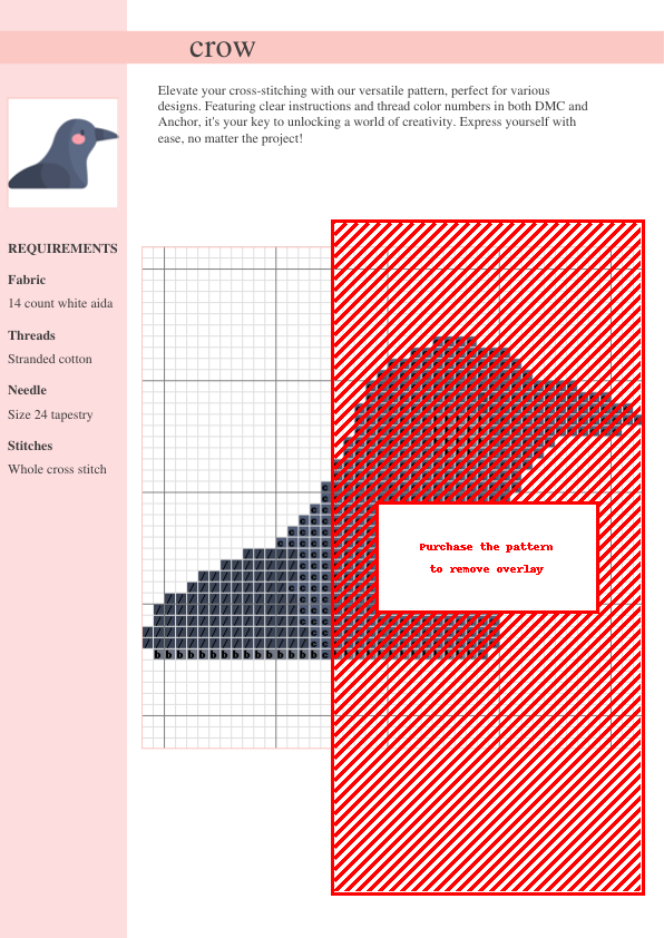 Embark on a captivating crafting journey with our Majestic Crow Cross Stitch Pattern! This gothic-inspired design showcases an intricately detailed crow, perched majestically amidst a subtly detailed background. The downloadable PDF pattern provides a two-page, easy-to-follow chart with clear symbols, ensuring a smooth stitching experience for both beginners and experienced cross-stitchers. We’ve included a comprehensive thread list compatible with both DMC and Anchor threads (with color numbers!), and a detailed color key for effortless color selection. The pattern’s versatile design allows for customization – create a small, delicate piece or a large, statement artwork to perfectly suit your vision and space. Perfect for Halloween projects, autumnal crafting, gothic home décor, or unique gifts, this pattern infuses spooky elegance into any project. Bring this stunning crow to life with your needle and thread – unleash your creativity and add a touch of mystique to your home or give a truly memorable gift!