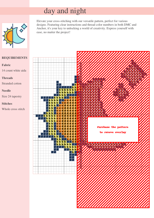 Embark on a cosmic crafting journey with our enchanting “Day & Night” cross stitch pattern! This captivating design beautifully portrays the radiant sun and serene moon, complemented by twinkling stars, creating a stunning piece of textile art. Perfect for cross-stitch enthusiasts of intermediate skill level, this pattern provides clear, easy-to-follow instructions and includes DMC and Anchor thread color codes for precise stitching. The intricate details, from delicate moonbeams to vibrant sun rays, are brought to life with precision. Imagine this breathtaking design adorning your wall in a beautiful frame, stitched onto a cozy pillow, or even transformed into a unique and heartfelt greeting card. This downloadable PDF pattern (two pages) offers a comprehensive symbol chart and a complete thread list for both DMC and Anchor brands. Download instantly and let your creativity shine! Bring the magic of the cosmos into your home with this versatile and beautiful design. A rewarding project for intermediate stitchers seeking a celestial theme, this pattern is a perfect blend of challenge and satisfaction.