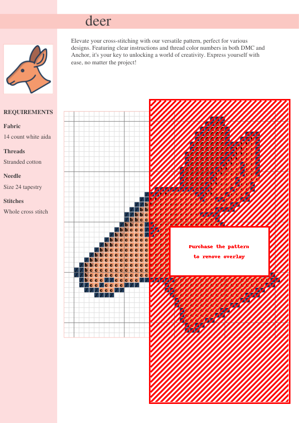Add woodland magic to your home with our charming Deer Cross Stitch Pattern! This easy-to-follow PDF pattern features an adorable deer design and includes DMC and Anchor thread color codes for a seamless stitching experience. Instantly download after purchase and bring this whimsical design to life! Perfect for beginners and experienced stitchers alike. Create a beautiful wall hanging, pillow, or unique gift!