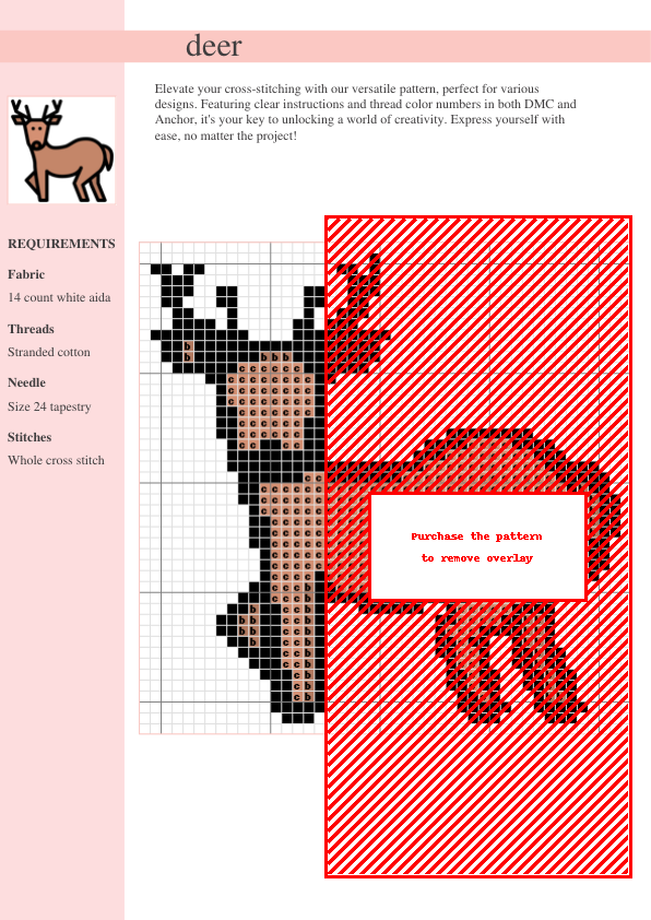 Embark on a whimsical cross-stitch journey with our adorable Woodland Deer Cross Stitch Pattern! This enchanting design, perfect for beginner and experienced stitchers, features a delightful deer nestled in a serene woodland setting. Stitched in calming earth tones of browns, greens, and creams, this pattern is ideal for adding rustic charm to your home décor, creating thoughtful handmade gifts, or enriching your personal crafting projects. Our clear and easy-to-follow instructions are provided in a two-page PDF, complete with comprehensive DMC and Anchor thread color codes for a seamless stitching experience. A detailed symbol key and a complete thread list for both DMC and Anchor threads are included, ensuring a smooth and enjoyable crafting process. This instant digital download allows you to start your project immediately, bringing the beauty of the forest into your home. Perfect for cozy autumn crafting and adding a touch of woodland magic to your life! Download your pattern and begin stitching today! This cross-stitch pattern is a wonderful way to relax, unwind and create something beautiful.