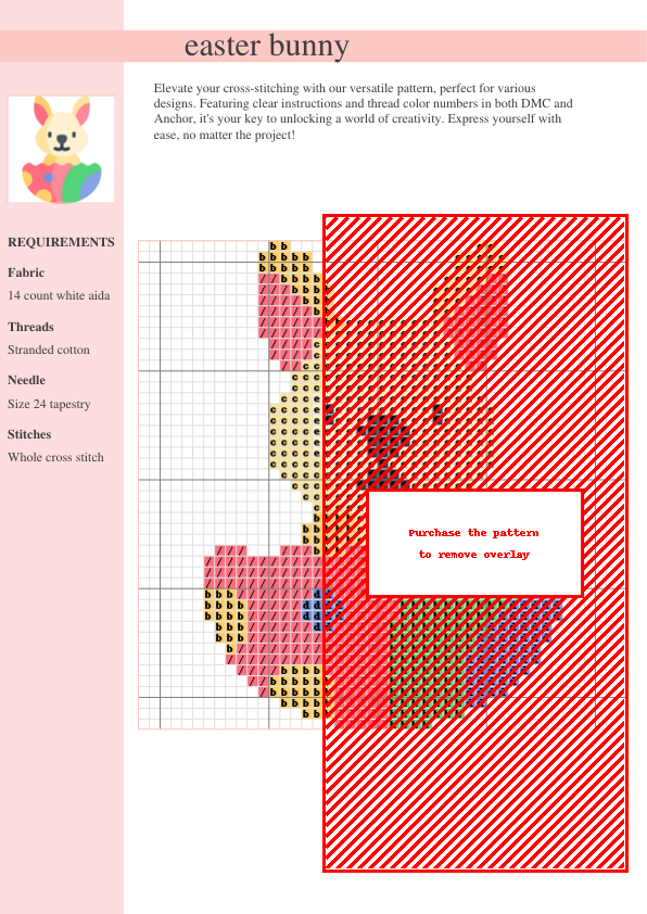 Stitch an adorable Easter bunny with this easy cross-stitch pattern! Includes DMC & Anchor thread charts, an instant downloadable PDF, and is perfect for all skill levels. Add springtime charm to your home or create a delightful Easter gift!