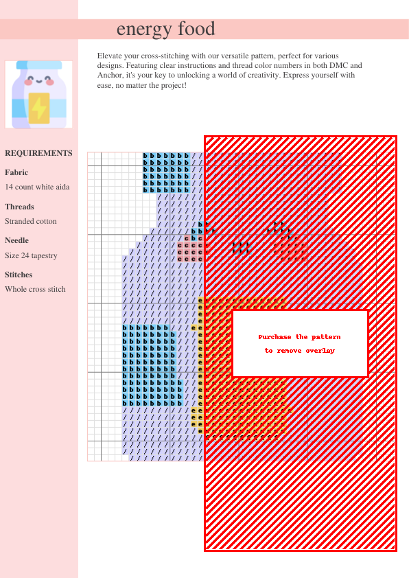 Stitch a vibrant and healthy cross-stitch design! Our “Energy Food” pattern features easy-to-follow instructions, DMC & Anchor thread color keys, an instant PDF download, and is perfect for all skill levels. Add a pop of color to your home with this cheerful fruit and vegetable design.