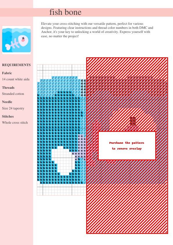Dive into a world of creative expression with our enchanting Fishbone Cross Stitch Pattern! This modern and easy-to-follow design blends contemporary aesthetics with a touch of whimsy, making it perfect for adding a unique flair to your home decor, clothing, or handmade gifts. The striking fishbone motif, rendered in a clean and refreshing color palette, is incredibly versatile. Imagine it adorning cozy pillows, stunning wall hangings, or even stylish tote bags! This pattern provides a complete color symbol chart and precise DMC and Anchor thread color codes for a seamless stitching experience. Instantly download your high-resolution, two-page PDF pattern after purchase, containing all the instructions you’ll need to create a stunning piece. The pattern’s clear design and detailed instructions make it ideal for both beginners seeking a satisfying first project and experienced cross-stitchers looking for a stylish and quick craft. Perfect for those seeking modern cross stitch patterns, nature-inspired designs, or unique textile art projects. Unleash your inner artist and stitch your own underwater-inspired masterpiece!