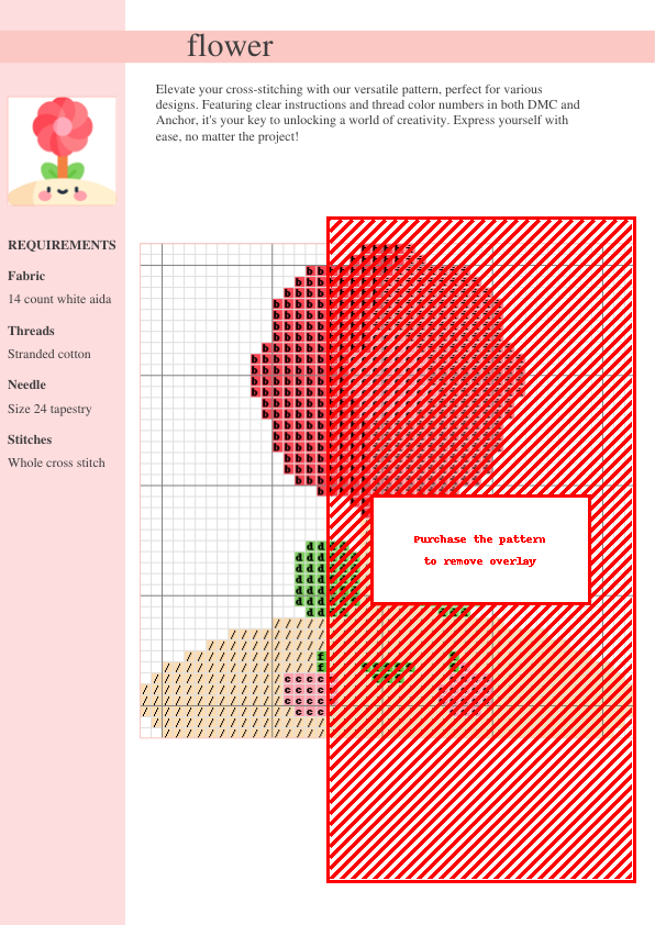 Unleash your inner artist with our ‘Blooming Beauty’ cross-stitch pattern! This captivating floral design is a delightful project for cross-stitchers of all skill levels. The pattern features intricate details and a vibrant color palette, creating a stunning finished piece perfect for home décor or a heartfelt handmade gift. Easy-to-follow instructions and a comprehensive thread list (including both DMC and Anchor color codes) ensure a smooth stitching experience. This instant PDF download includes a clear symbolic chart, detailed instructions spanning two pages, and a complete DMC and Anchor thread code reference. Whether you’re a beginner or an experienced stitcher, transform simple thread into a blooming masterpiece! Add a touch of elegance and handmade charm to your life with this beautiful cross-stitch project.