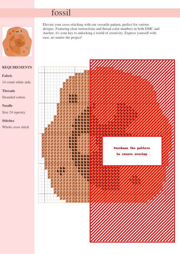 Unearth your creativity with our meticulously crafted Fossil Cross Stitch Pattern! This enchanting design showcases detailed illustrations of ancient fossils – ammonites, trilobites, and more – bringing a touch of prehistoric elegance to your home or creating a unique gift. The pattern provides clear, easy-to-follow instructions and a comprehensive thread color chart featuring both DMC and Anchor thread numbers for effortless stitching. The intricate details of the fossils offer a rewarding stitching experience for intermediate to advanced cross-stitchers. Download your instant PDF pattern after purchase and begin your prehistoric crafting adventure! The two-page PDF includes symbol-based instructions and a complete DMC and Anchor thread color key, ensuring a smooth and enjoyable stitching experience. Bring a piece of ancient history to life, stitch by stitch! This pattern is perfect for adding sophisticated, earthy tones to your home or as a truly unique handmade gift. The detailed illustrations make it a satisfying and visually stunning project. Perfect for cross stitch enthusiasts seeking a challenging and beautiful project.