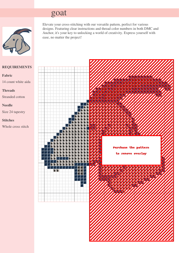 Bring the charm of the countryside into your home with this delightful Goat Cross Stitch Pattern! This versatile design is perfect for cross-stitch enthusiasts of all skill levels, from beginners seeking a rewarding project to experienced stitchers looking for a charming addition to their repertoire. The pattern features an endearing goat, meticulously detailed yet approachable in its style. Clear, easy-to-follow instructions are included, along with convenient thread color codes for both DMC and Anchor brands, ensuring a smooth and enjoyable stitching experience. This adorable goat design is incredibly versatile and can be stitched onto a variety of fabrics to create a unique pillow, wall hanging, tote bag, or even a charming greeting card. Imagine the rustic charm it will add to your home decor or the joy of gifting a handmade treasure! This instant download PDF includes a two-page pattern with symbols and a complete list of required DMC and Anchor thread numbers. Unleash your creativity and stitch up some farm-fresh fun! The finished project makes a wonderful gift for goat lovers, farm enthusiasts, or anyone who appreciates handmade crafts. Download your pattern today and start stitching!