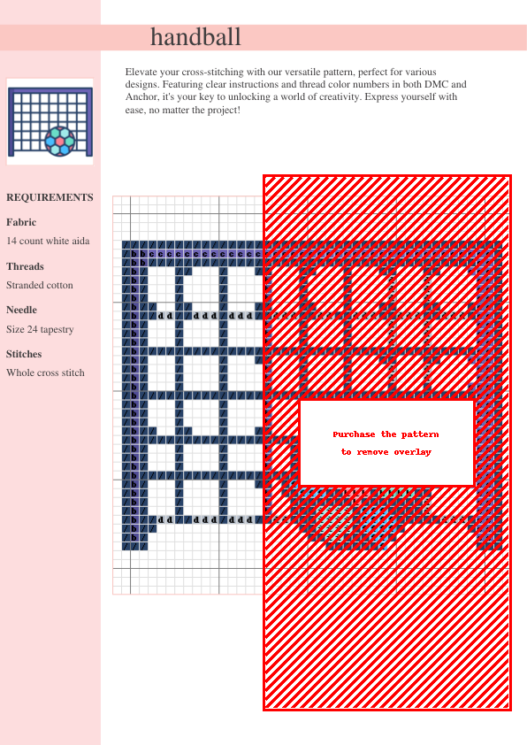 Capture the energy of the handball court with this dynamic cross-stitch pattern! This vibrant design is perfect for adding a sporty touch to your home décor, creating personalized gifts for athletes or handball enthusiasts, or simply showcasing your love for the game. The pattern includes a detailed, easy-to-follow chart with clear symbols, suitable for cross-stitchers of all skill levels, from beginner to advanced. DMC and Anchor thread color codes are provided for your convenience, allowing flexibility in thread selection and ensuring you can easily find the perfect shades to match your vision. This instantly downloadable two-page PDF pattern eliminates any waiting time—start stitching your masterpiece immediately after purchase! The design is a striking representation of handball action, featuring intricate details such as the dynamic movement of the players and the energy of the game, adding a unique and personal touch to your cross-stitch projects. Unleash your creativity and stitch up some excitement! This pattern is a fantastic way to combine your love for sports and crafting. Finished project makes a great gift for birthdays, holidays, or any special occasion.