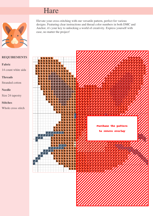 Hop into spring with our delightful Hare Cross Stitch Pattern! This charming design features a whimsical hare, perfect for cross-stitchers of all skill levels. The pattern is rendered in a delightful, easily-stitchable style, making it ideal for creating unique home décor accents, heartwarming gifts, or adding a touch of springtime magic to your personal crafting projects. We’ve prioritized ease of use – the pattern includes a complete color chart utilizing both DMC and Anchor thread brands, offering flexibility in thread selection. This instant digital download provides a two-page PDF containing a clear, easy-to-follow pattern chart with symbols and a corresponding DMC and Anchor thread code list. The pattern’s intricate details and adorable design make it perfect for adding a touch of whimsical spring to your needlepoint projects, home décor, or handmade gifts. Perfect for beginner stitchers and seasoned crafters alike, this pattern offers a satisfying and enjoyable cross-stitch experience. Embrace the joy of spring with this beautiful and accessible cross-stitch project! Download your pattern today and let the stitching begin!