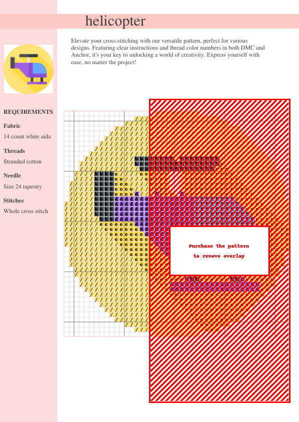 Take to the skies with our ‘Soar High’ Helicopter Cross Stitch Pattern! This meticulously crafted design captures the intricate details of a powerful helicopter, making it a rewarding project for cross-stitchers of all skill levels. The pattern features a clear, easy-to-follow color symbol chart, ensuring a smooth stitching experience for beginners and a satisfying challenge for more experienced stitchers. We’ve included a comprehensive thread list, conveniently listing both DMC and Anchor thread numbers for your convenience. Imagine the pride of creating this unique piece – perfect for adding a modern, masculine touch to your home decor, gifting to an aviation enthusiast, or simply expanding your cross-stitch collection with a truly impressive design. This versatile, two-page PDF is instantly downloadable after purchase, allowing you to begin your stitching adventure immediately! The PDF includes both the color symbol chart and a complete thread list. Soar High with this detailed and rewarding cross stitch pattern! Perfect for intermediate and advanced stitchers who appreciate detail and challenge. Downloadable instantly to your device.