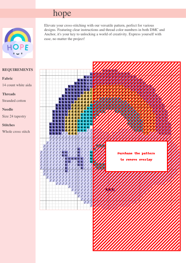 Embrace tranquility with the ‘Hope’ cross stitch pattern! This enchanting design features a delicate and modern floral arrangement, perfect for adding a touch of elegance to your home or gifting a handcrafted treasure. Meticulously crafted with clear, easy-to-follow symbols and a comprehensive color key, it lists both DMC and Anchor thread numbers for your convenience. Whether you’re a seasoned stitcher or a beginner, this pattern promises a rewarding and beautiful crafting experience. The downloadable PDF includes a two-page document – a pattern chart and a complete thread list – ensuring a smooth and enjoyable stitching process. Imagine the calming rhythm of cross-stitch as you create a stunning piece for yourself, or gift a unique piece of handmade art to a loved one. Perfect for home décor, gifts, personal projects, or expanding your needlework collection. Download your pattern instantly after purchase and begin your stitching journey today!