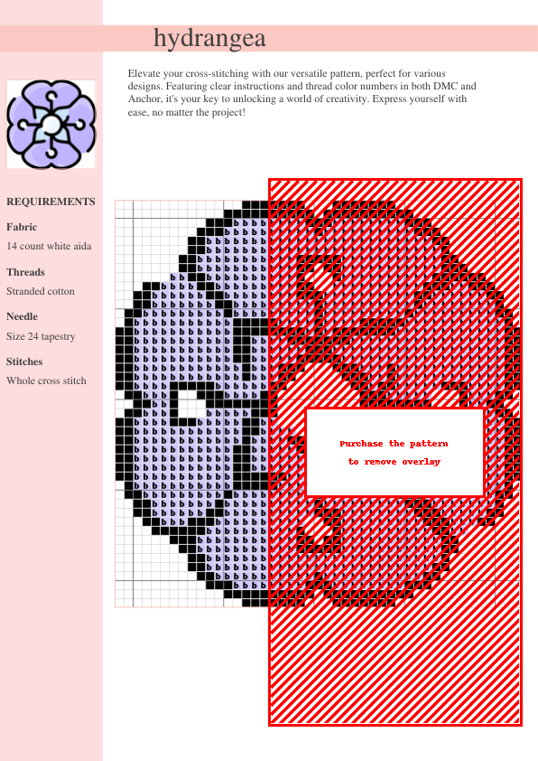 Unleash your creativity with the Hydrangea Haven cross stitch pattern! This enchanting design features a vibrant cluster of hydrangeas, bursting with color and intricate detail. Perfect for adding a touch of elegance to your home décor, creating a thoughtful handmade gift, or simply enjoying a relaxing crafting session. The pattern includes clear, easy-to-follow instructions and a comprehensive thread list using both DMC and Anchor color codes for effortless stitching. Whether you’re a seasoned cross-stitcher or a beginner looking for a beautiful project, this pattern offers a serene and satisfying crafting journey. The instant digital download provides a two-page PDF with a color symbol chart, a detailed thread color key, and backstitch instructions (where applicable) ensuring you’re ready to stitch immediately. This captivating hydrangea design is ideal for pillows, wall art, samplers, greeting cards, or any project that deserves a touch of floral beauty. Bring the tranquility of nature into your home with Hydrangea Haven! This pattern is perfect for all skill levels from beginner to advanced stitchers.