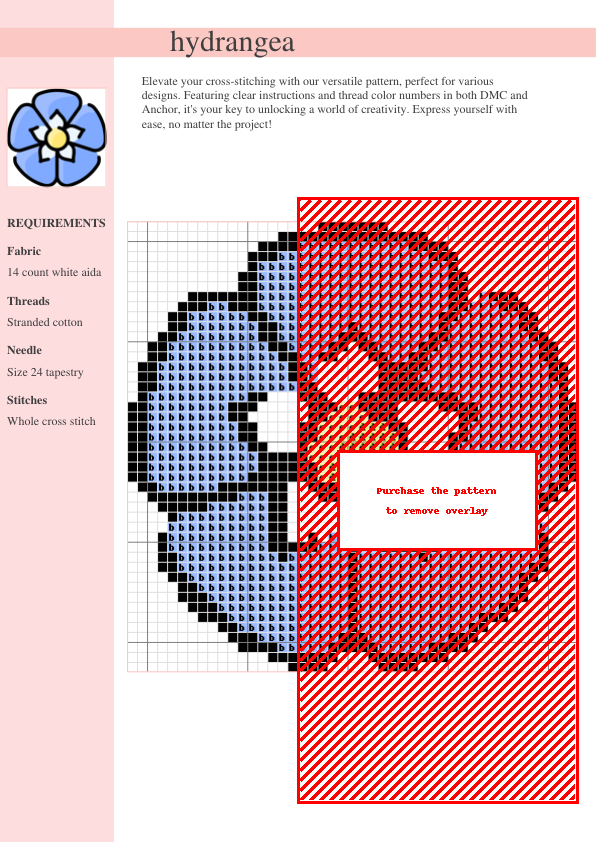 Stitch a breathtaking hydrangea scene with our easy-to-follow cross stitch pattern! Includes DMC & Anchor thread color codes for simple color matching and an instant PDF download for immediate crafting enjoyment. Perfect for intermediate stitchers.
