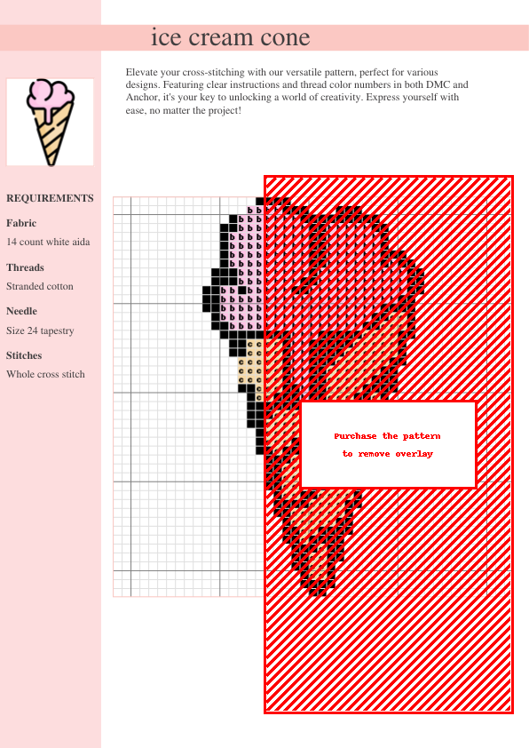Indulge your creativity with our delightful Ice Cream Cone Cross Stitch Pattern! This charming design captures the vibrant colors and yummy textures of a classic summer treat. Perfect for adding a touch of whimsy to your home décor, creating personalized gifts, or embellishing unique accessories. The detailed pattern includes easy-to-follow instructions and corresponding DMC and Anchor thread color numbers for a seamless stitching experience. This two-page PDF download provides both a clear symbol chart and a comprehensive thread list, making it perfect for cross-stitchers of all skill levels – from beginners to experienced crafters. Unleash your inner artist and stitch up a sweet memory! Imagine your finished piece adorning tote bags, pillowcases, wall hangings, or even a unique greeting card. Download your pattern instantly after purchase and start stitching your delicious creation today! This fun and rewarding project makes a wonderful gift, too. The pattern features approximately 15 colors (DMC and Anchor equivalents provided), and the finished size is approximately 4×6 inches (adjustments possible).