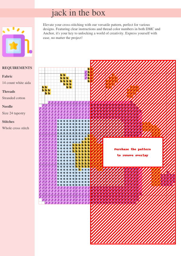 Unleash your inner child with our adorable Jack-in-the-Box cross stitch pattern! This delightful design bursts with color and whimsical charm, making it perfect for adding a playful touch to your home décor or creating a unique handmade gift. The intricate details of the jack-in-the-box, meticulously crafted for a satisfying stitching experience, will enchant cross-stitchers of all skill levels. This easy-to-follow pattern provides both DMC and Anchor thread color charts for a seamless crafting process. Instantly download your two-page PDF pattern after purchase – it features a complete symbol chart and comprehensive thread lists for both DMC and Anchor threads. Imagine this fun design adorning pillows, wall art, or adding a touch of playful magic to a sampler collection. Let your needlework tell a story with this rewarding project! Perfect for beginners and experienced stitchers alike, this pattern is a guaranteed burst of joyful crafting. Add a pop of playful color to your life today!