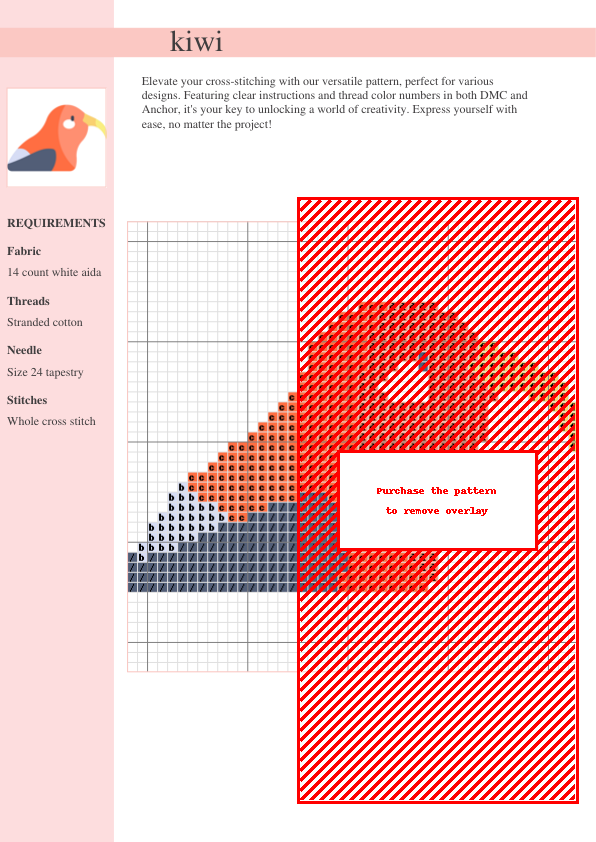Bring a burst of sunshine to your crafting projects with our delightful Kiwi Cross Stitch Pattern! This vibrant design showcases a juicy kiwi fruit, perfect for adding a touch of nature-inspired sweetness to your home décor, clothing, or accessories. Meticulously crafted for a smooth stitching experience, this pattern includes clear, easy-to-follow instructions and a comprehensive thread color chart using both DMC and Anchor stranded cotton thread numbers. The downloadable PDF pattern features a large, crisp design chart with symbols and a detailed thread list, making it simple to start your project immediately. The intricate details of the kiwi’s texture and vibrant green and brown colors are beautifully captured, offering a rewarding stitching experience for stitchers of all levels. Perfect for adding a unique touch to pillows, tote bags, wall art, or even small needlepoint projects! Let your creativity blossom with this refreshing cross-stitch pattern. Download your pattern instantly and start stitching your delicious kiwi today!