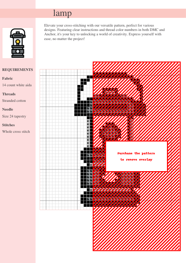 Craft a cozy and charming atmosphere with our ‘Illuminating Nights’ cross stitch pattern! This easy-to-follow design features a delightful lamp, perfect for beginners and experienced stitchers. Includes DMC and Anchor thread color codes for easy material access. Instant PDF download for immediate crafting enjoyment. Add a touch of handmade warmth to your home!