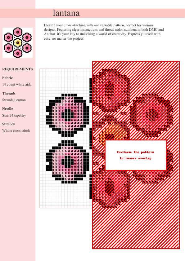 Stitch a radiant Lantana flower with this easy-to-follow cross-stitch pattern! This instant PDF download includes DMC & Anchor thread codes, detailed instructions, and a clear symbolic chart. Perfect for beginners and experienced stitchers, this vibrant floral design is ideal for creating beautiful home décor or a unique, thoughtful gift.