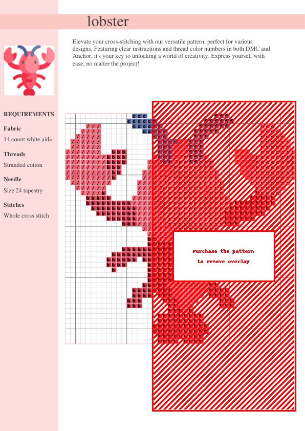 Stitch a charming coastal lobster with our easy-to-follow cross-stitch pattern! This downloadable PDF includes a detailed design, DMC & Anchor thread color keys, and is perfect for home décor, gifts, or personal enjoyment. Instant download! Bring a touch of the seaside into your home with this delightful pattern. Easy instructions for all skill levels.