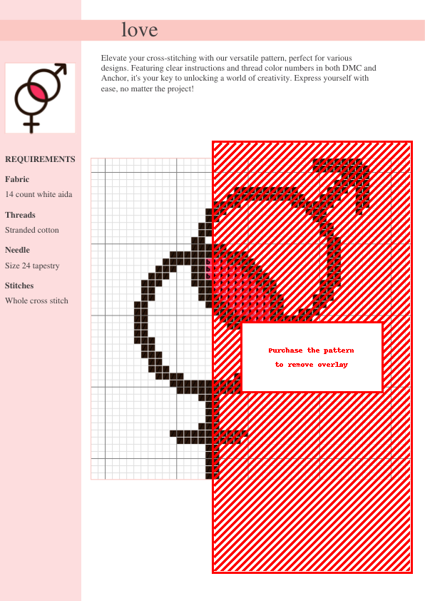 Create a beautiful ‘Love’ cross-stitch project with this easy-to-follow PDF pattern. Featuring a romantic heart and flower design in soft pastels, it includes a clear chart, DMC & Anchor thread codes, and is perfect for gifting or personal enjoyment. Download instantly!