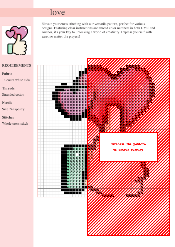 Stitch up a heartwarming masterpiece with our ‘Love’ cross stitch pattern! This charming design features a delightful heart motif, perfect for adding a touch of romance to your home or creating a thoughtful handmade gift. The versatile design is suitable for various projects, from wall art and pillows to samplers and more. Easy-to-follow instructions include both DMC and Anchor thread color codes for convenient shopping, ensuring a smooth stitching experience. The downloadable PDF includes a two-page design with clear symbols and a comprehensive thread list, making it ideal for both beginners and experienced cross-stitchers. Imagine the joy of creating a beautiful, personalized keepsake perfect for Valentine’s Day, weddings, anniversaries, or any occasion that celebrates love. This high-quality pattern is a wonderful way to express your creativity and add a touch of handmade charm to your life. Create a personal touch to your home décor, or make a unique, lovingly crafted gift for someone special. Download your pattern today and begin stitching your symbol of love! This pattern features a soft blush pink and deep red color palette, creating a truly romantic feel.