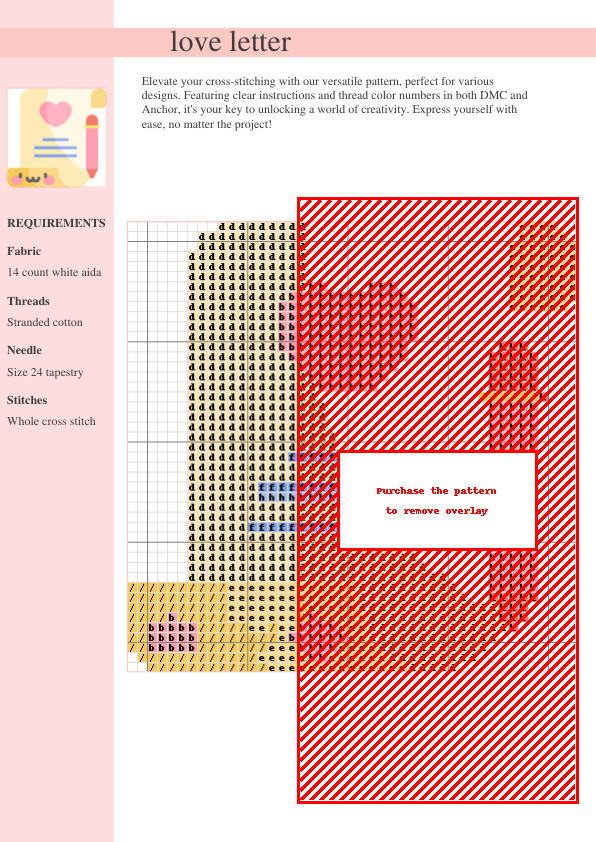 Download this charming “Love Letter” cross-stitch pattern and create a romantic masterpiece! This easy-to-follow PDF includes a detailed chart, DMC & Anchor thread codes, and is perfect for all skill levels. Stitch a unique gift or beautiful home décor. Relax, craft, and create!