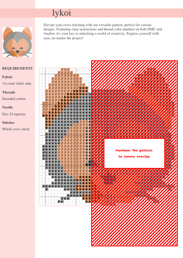Stitch a mesmerizing Lykoi cat with this detailed cross-stitch pattern! Includes easy-to-follow instructions, DMC & Anchor thread codes, and an instant PDF download. Perfect for intermediate stitchers seeking a challenging and rewarding project. Create a unique and stunning piece of cat-themed cross-stitch art.