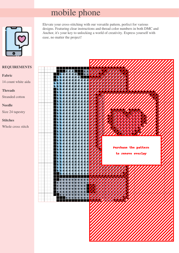 Instant download! Adorable cross-stitch pattern of a cute mobile phone. Includes DMC & Anchor thread color keys, a full material list, and easy-to-follow instructions. Perfect for beginners and experienced crafters!